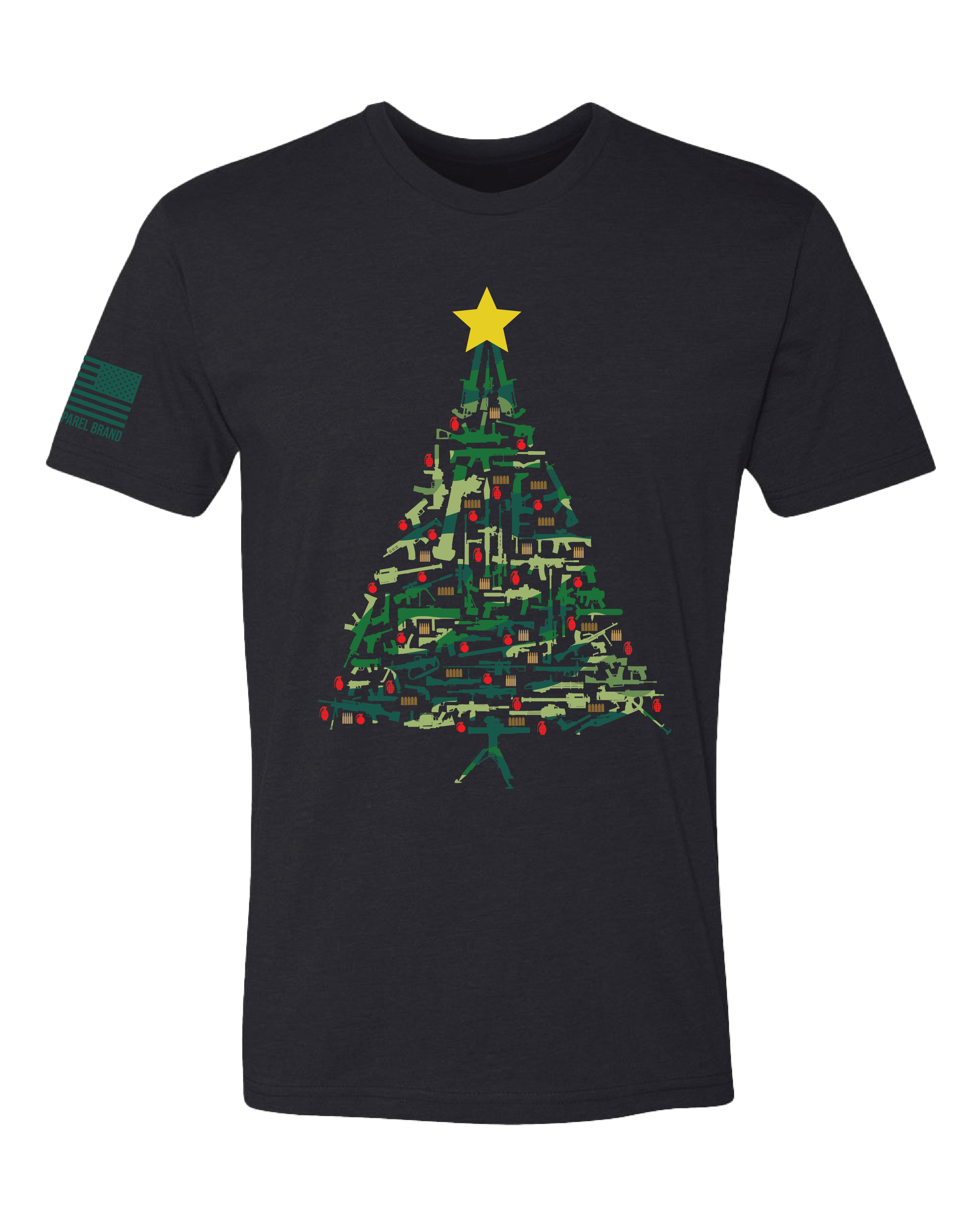 Guns and Grenades Christmas Tree T-Shirt → BASED APPAREL