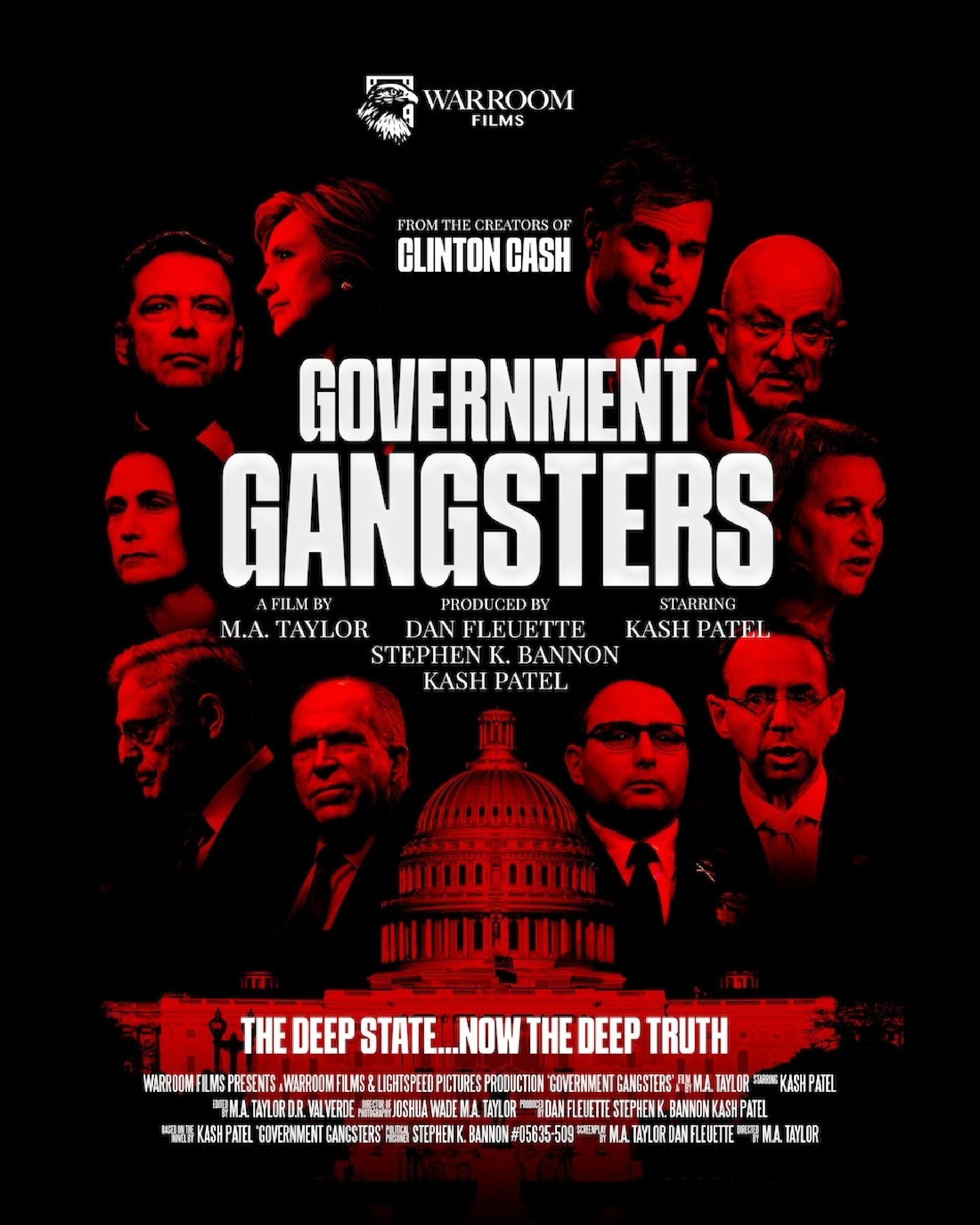 From the visionary team behind “Clinton Cash” comes a groundbreaking new exposé that will leave you on the edge of your seat. This poster memorializes the film “Government Gangsters,” based on the best-selling book by Former Deputy Director of National Intelligence Kash Patel, which pulls back the curtain on the sinister world of corrupt bureaucrats, government officials, and their media accomplices, as they conspired to bring down a sitting President, Donald J. Trump, and all those who support him.