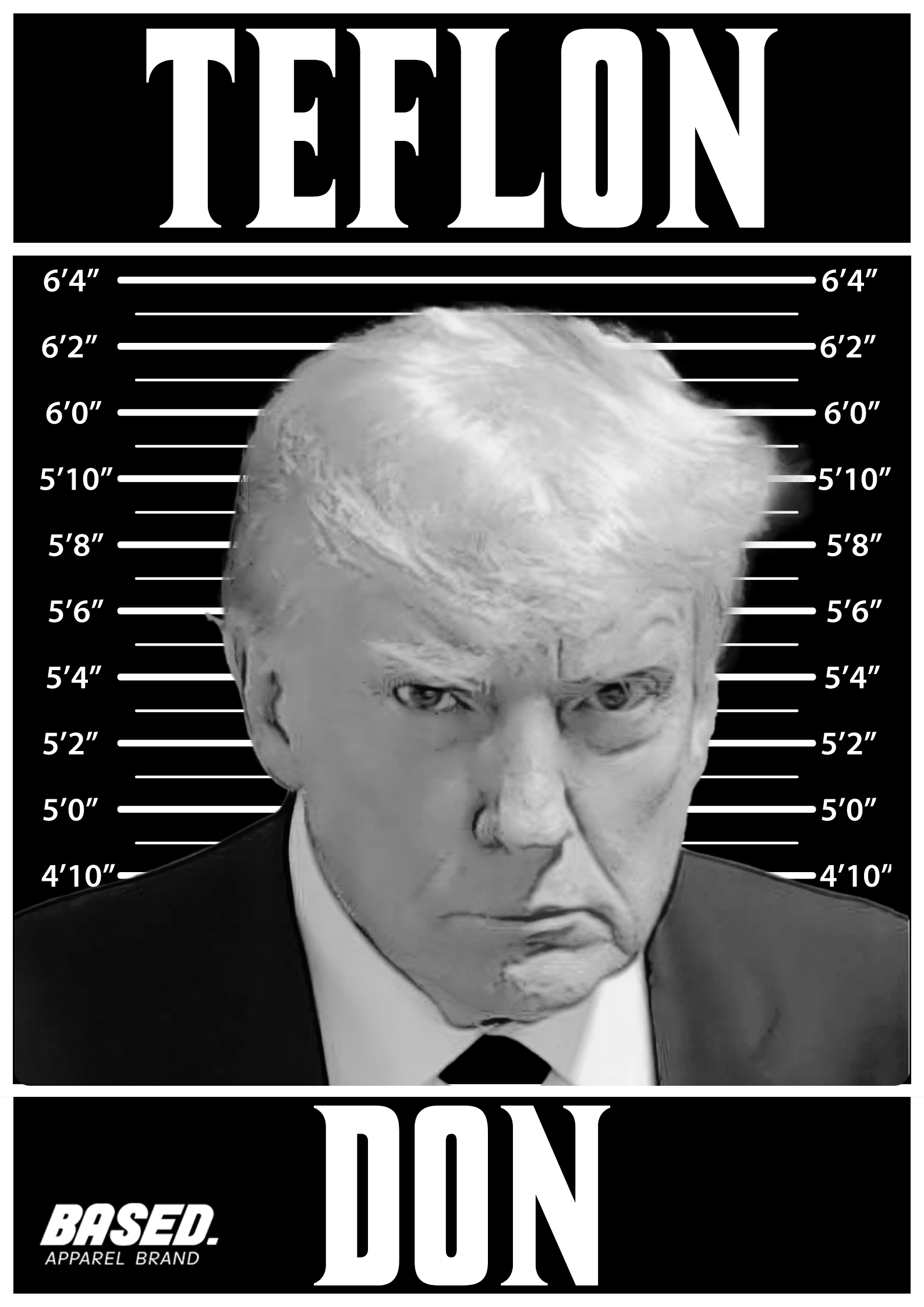 Inspired by President Trump’s resilience and ability to withstand all of the slings and arrows thrown at him, we created a poster to memorialize his fight. The word Teflon is used in culture to describe a person who lets everything “roll off.” Uran Dictionary says, “nothing sticks to Teflon.” All posters are sized at 16″ x 20″ on Mil Solvent Paper, 80# Cover stock.